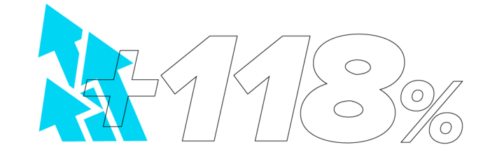 - 118% increase in the total number of keywords, equivalent to an 83% increase in searches, ranking in the top 20 positions.