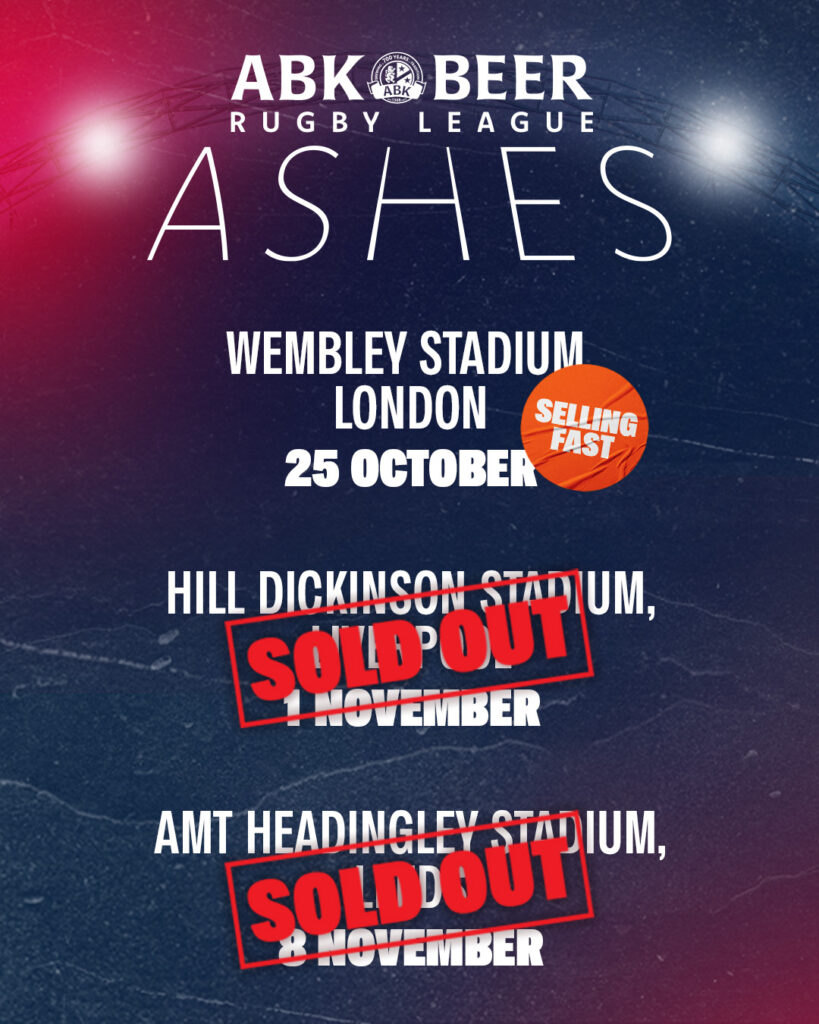 The Rugby League Ashes is a three-match series between England and Australia taking place at Wembley, Everton and Headingly in the Autumn of 2025. The first series to be hosted on English soil for over 22 years, making it a historic and important moment for the sport of International Rugby League.